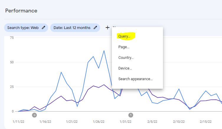 So go to the filters across the top and click on the “+”. It’ll open a filter menu. Click on “query”.